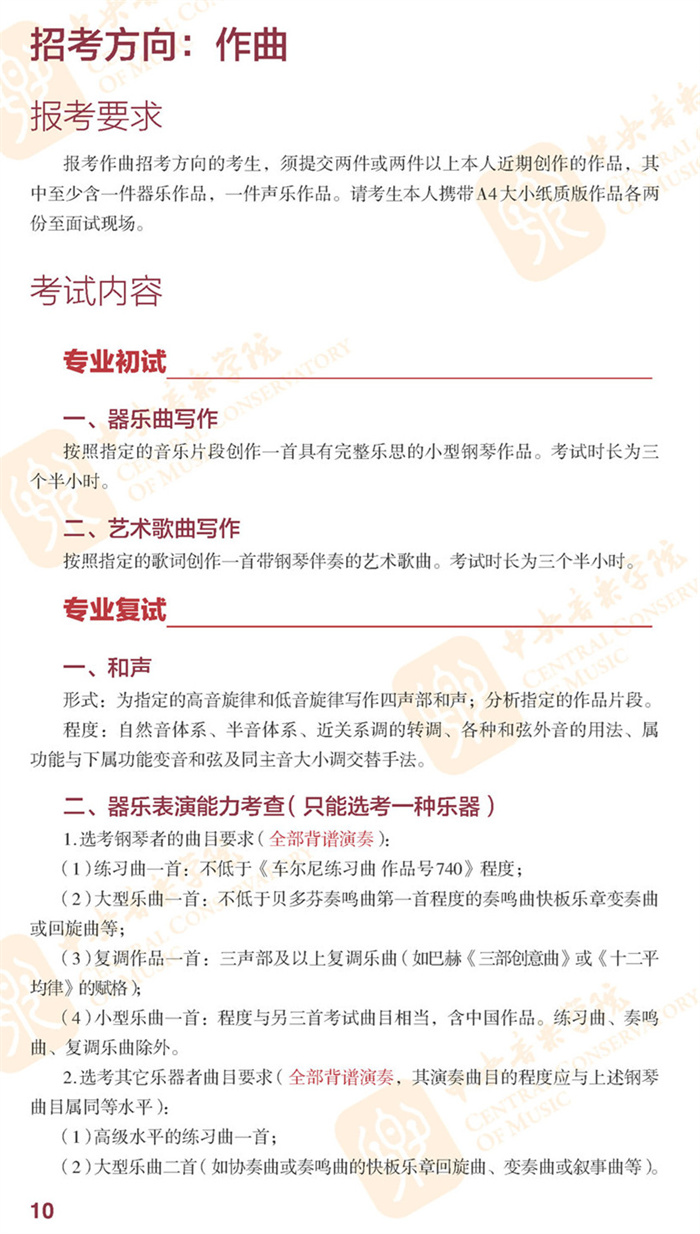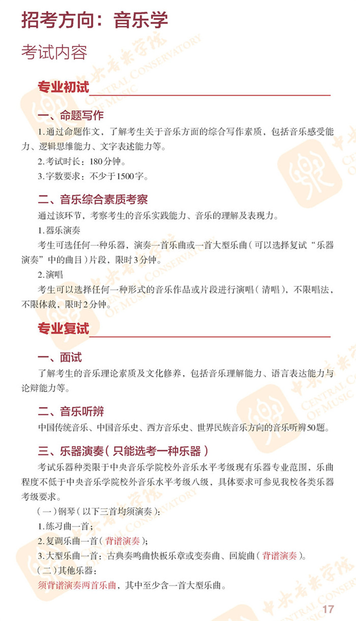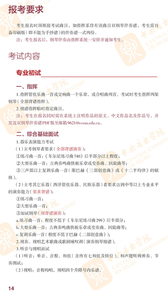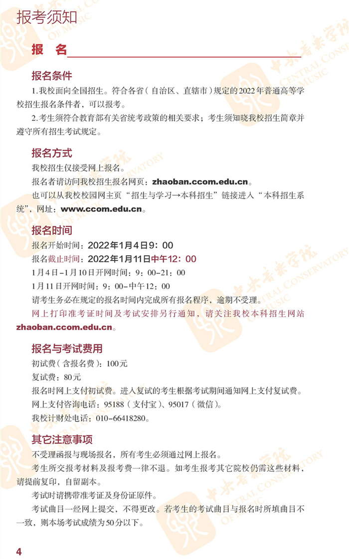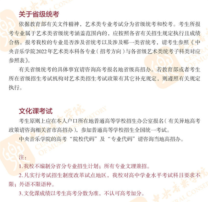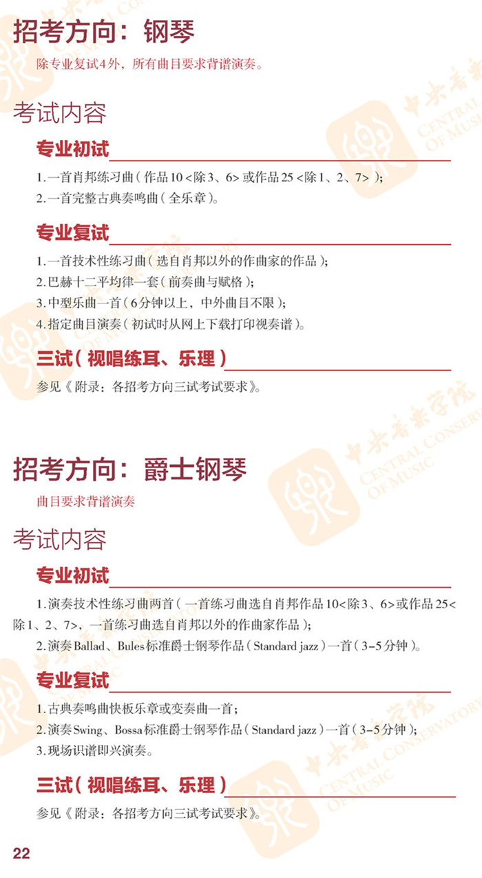 2022年中央音乐学院招生简章