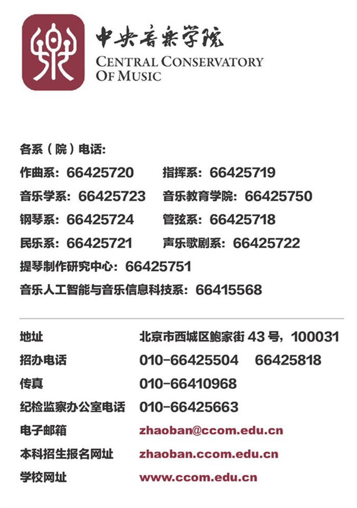 来源:2022年中央音乐学院招生简章 | 作者:2022年中央音乐学院招生简章 | 发布时间: 2022-01-04 | 23944 次浏览 | 分享到: