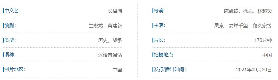 《长津湖》是由陈凯歌、徐克、林超贤联合监制并执导,吴京、易烊千玺领衔主演,段奕宏特别出演,朱亚文、李晨、胡军、韩东君主演的抗美援朝电影。长津湖电影以长津湖战役为背景,讲述了一个志愿军连队在极度严酷环境下,坚守阵地奋勇杀敌,为长津湖战役胜利作出重要贡献的感人故事,该片于2021年9月30日在中国大陆上映。
