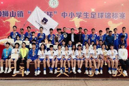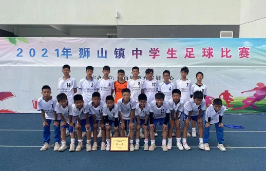 ▲超盈实验中学男子队获得 2021 年狮山镇中学生足球比赛冠军,实现镇赛四连冠