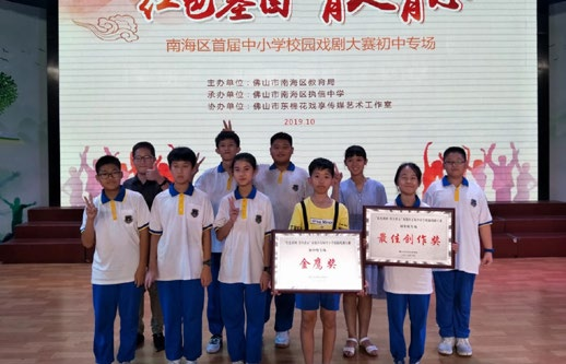 ▲我校初中话剧团作品《因为爱》获南海区首届戏剧大赛金鹰奖
