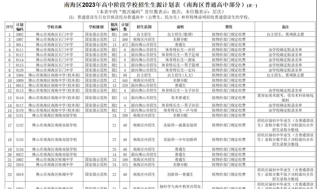 为做好2023年初中学业水平考试与高中阶段学校招生工作,便于家长和考生了解学校招生情况,现公布2023年南海区高中阶段学校招生计划。