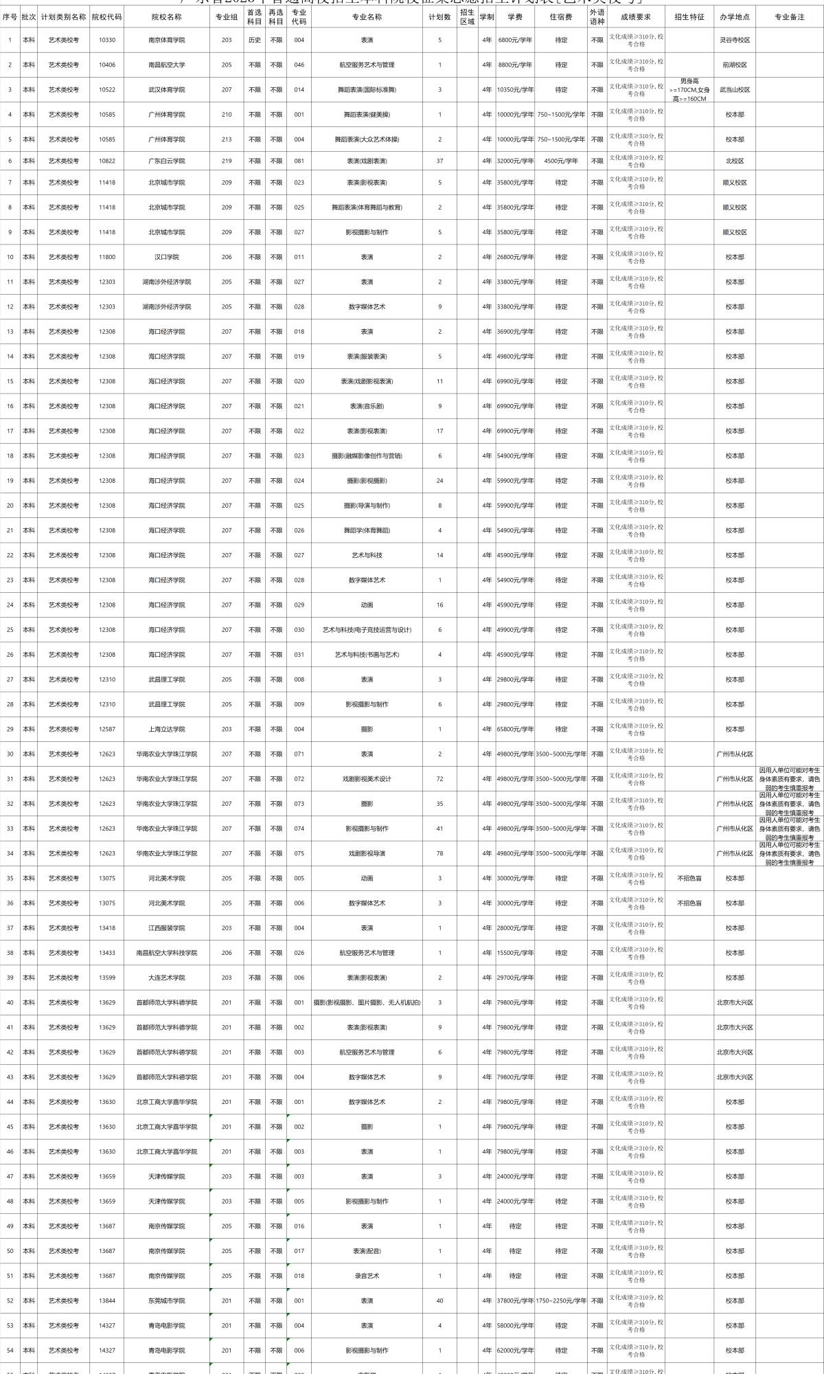 [艺术类校考]广东省2023年普通高校招生本科院校征集志愿招生计划表