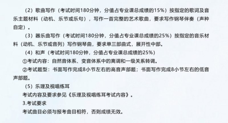哈尔滨音乐学院2024年作曲专业考试大纲