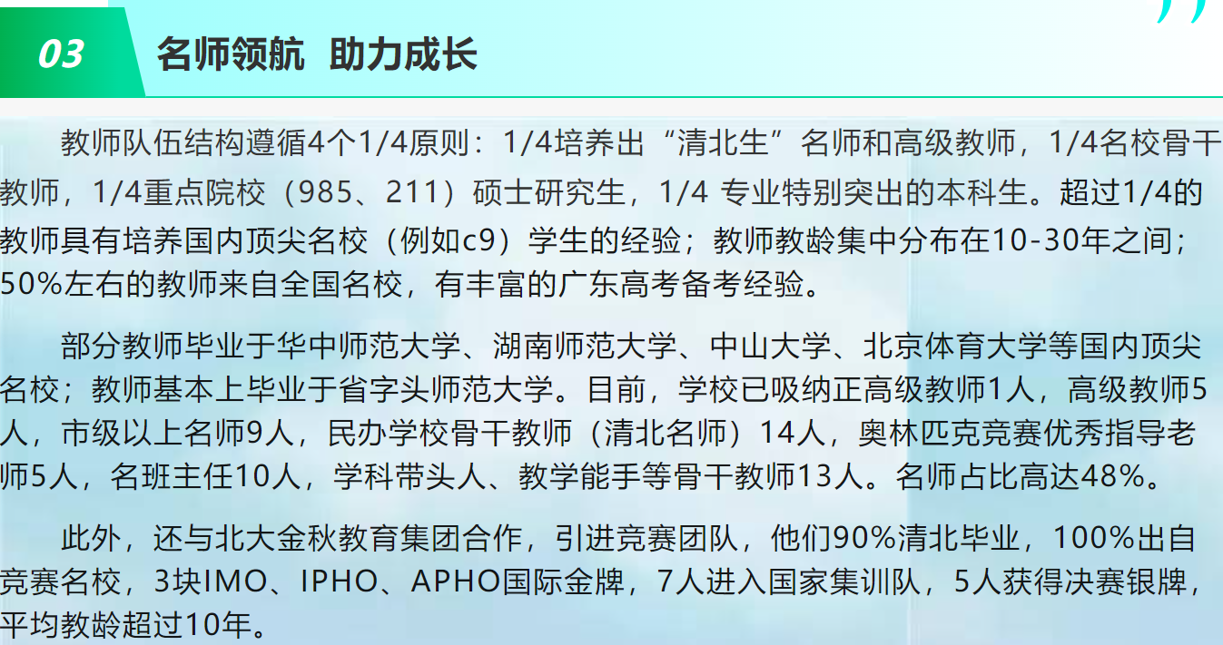 2.师资配备:教学经验丰富、教育理念先进、教学成果卓越的名师执教;