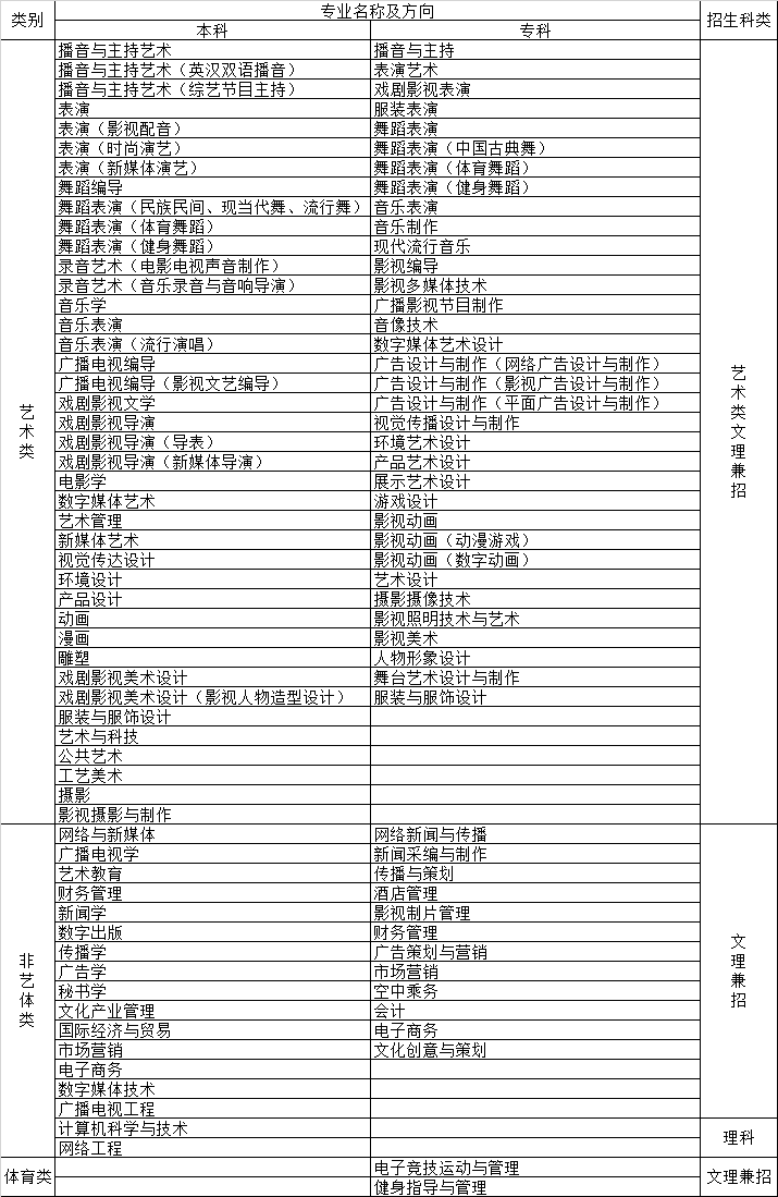 注:各省(市、自治区)招考专业(方向)以当地招生考试主管部门公告为准。
