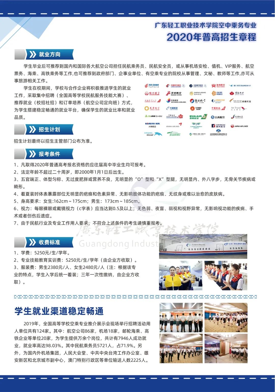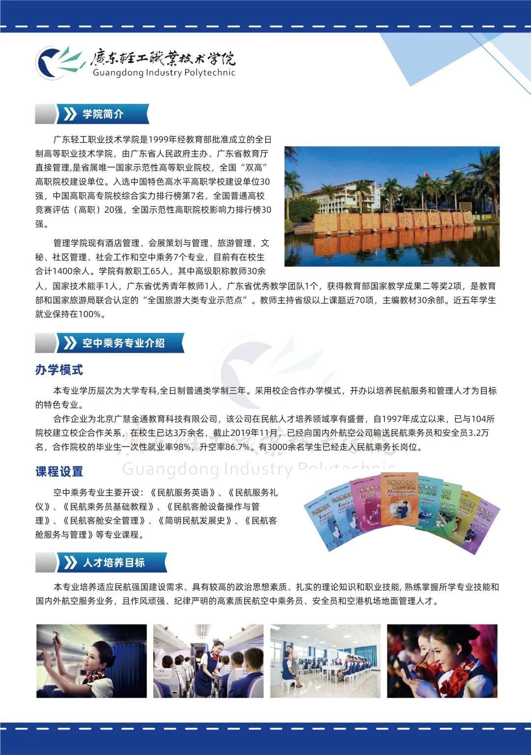 本专业学历层次为大学专科,全日制普通类学制三年。采用校企合作办学模式,与北京广慧金通教育科技有限公司联合办学,采取“人才共育,过程共管,责任共担,成果共享”的订单培养模式。学生入学后将有机会与多家航空公司签订定向培养、订单培养协议,实现学生入学即就业的目标。