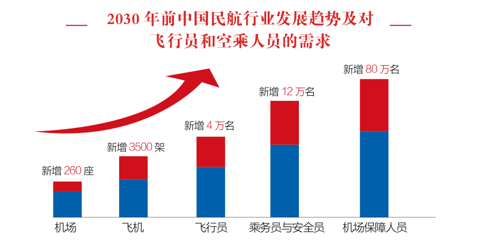 目前,中国民航对世界民航增长贡献率超过 20%,位居全球第一;民航总周转量持续保持年均16.3% 的高速增长;旅客运输周转量在综合交通体系中的比重达 31%,航空货运承担进出口贸易额比重达18.5%。根据民航局《新时代民航强国建设行动纲要》,从2021年到2035年,我国将实现从单一的航空运输强国向多领域的民航强国跨越。与此同时,造就一支与民航强国相适应的结构全、素质高、规模大的民航人才队伍是民航强国建设和高质量发展的关键因素,中国民航人才的需求规模与日俱增,发展前景广阔,职业稳定性得到保证。