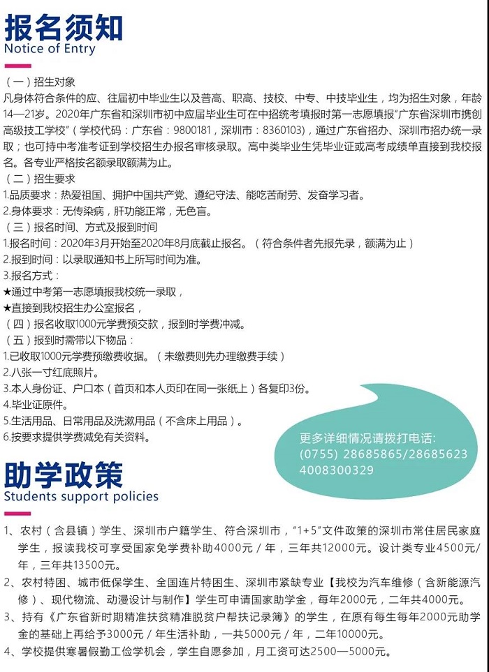 2020深圳市携创高级技工学校招生简章
