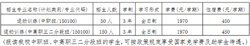 2、中职班、中高职三二分段班:三年全日制,运动训练专业。