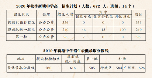 2020广州市增城区新塘中学招生简章