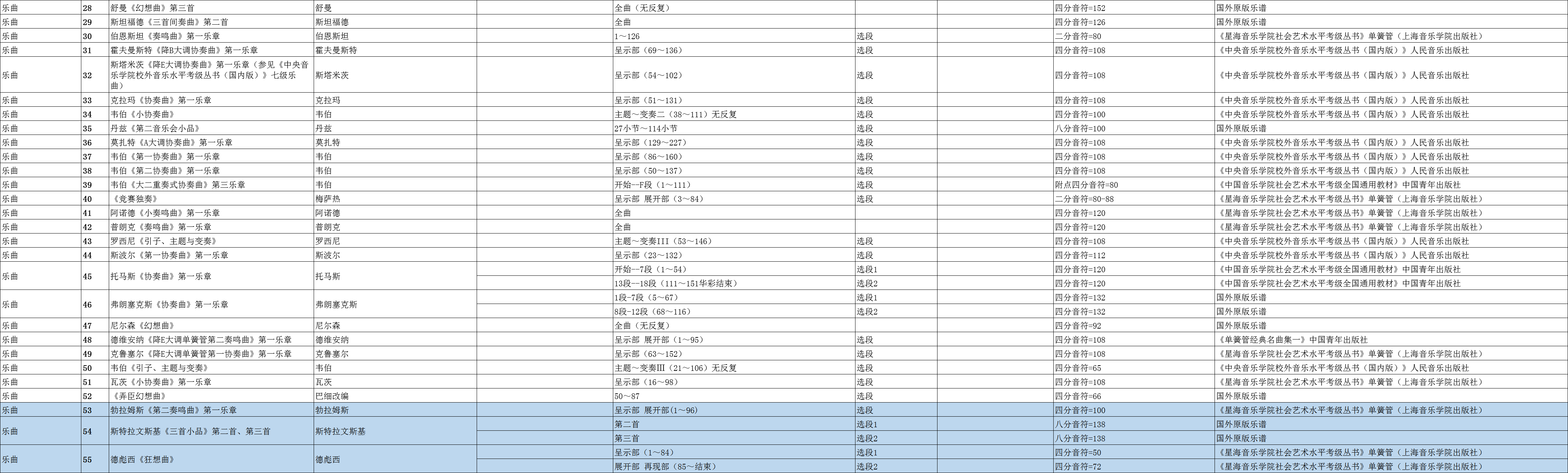 广东省音乐联考单簧管乐曲规定曲目