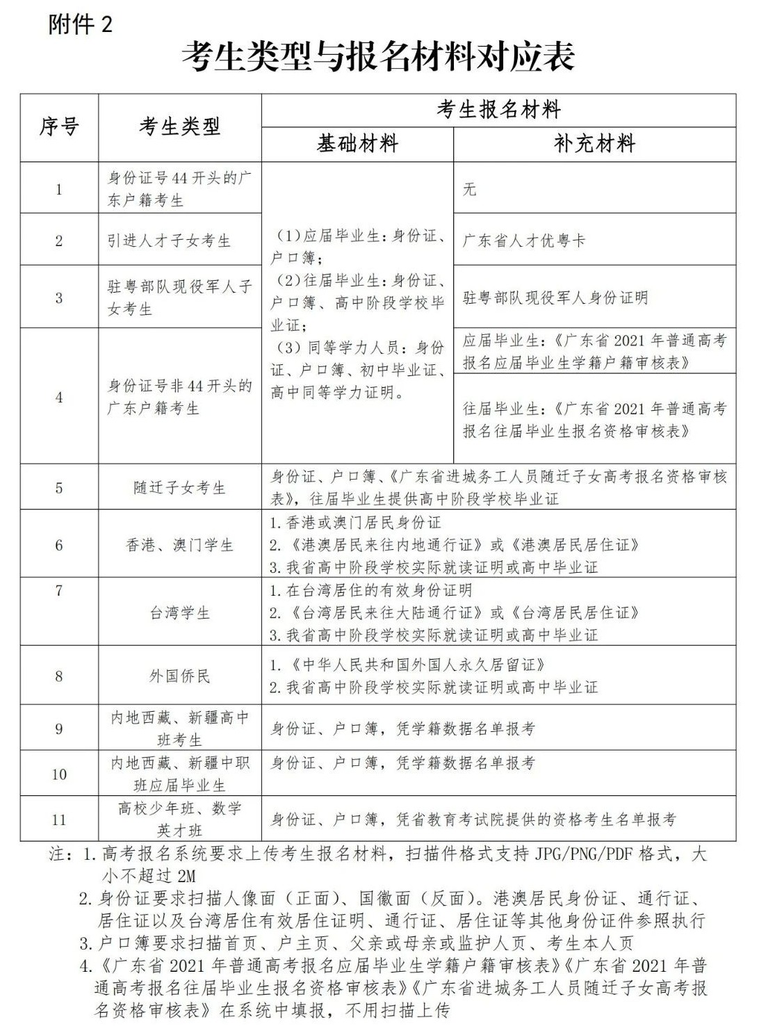 根据《关于广东省2021年普通高校招生统一考试报名有关事项的通知》(粤招〔2020〕11号)、《关于做好广东省2021年普通高校招生统一考试报名工作的通知》(粤招〔2020〕12号)的要求,我省2021年普通高考报名工作于2020年11月1-10日进行,绝大部分符合报考条件的考生已完成报名。为满足退伍军人、运动训练及武术与民族传统体育考生、高职院校自主招生考生等符合我省高考条件,因各种原因尚未参加高考报名人员的需求,经研究决定安排一次高考补报名。有关事宜,快来看看。
