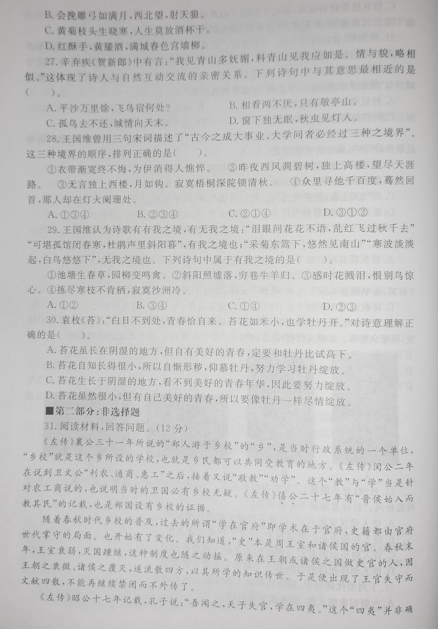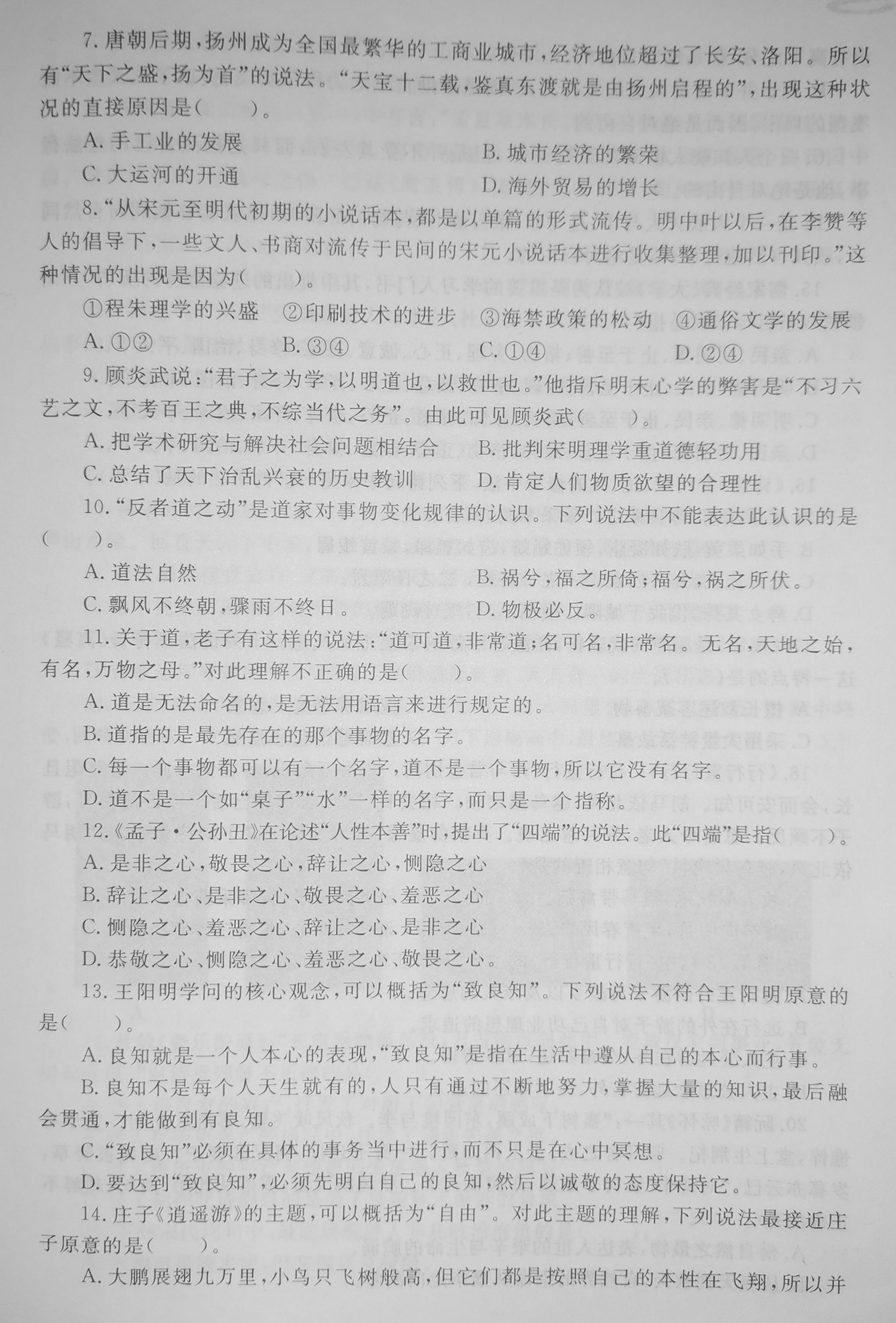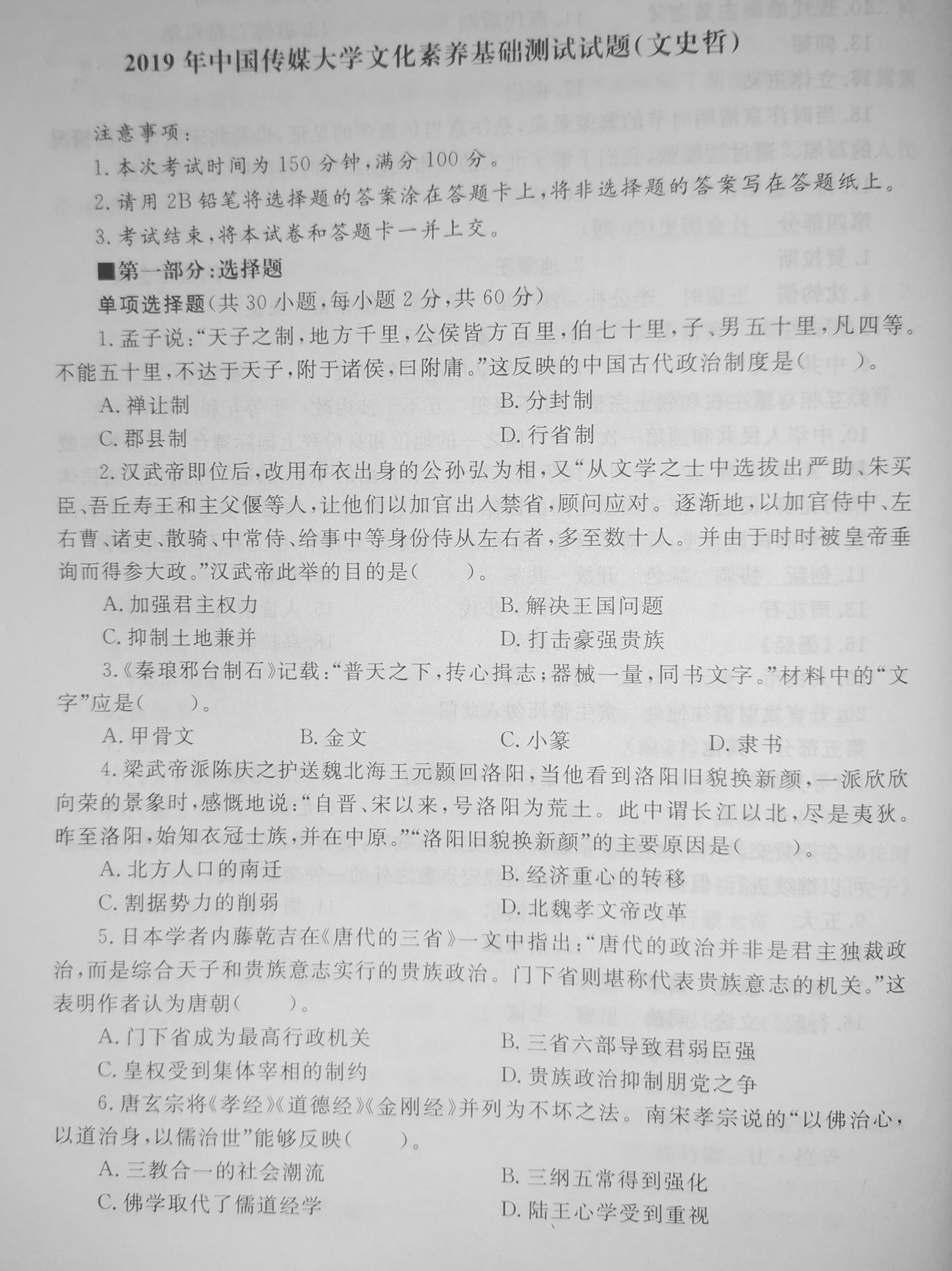 中国传媒大学2019年文史哲真题