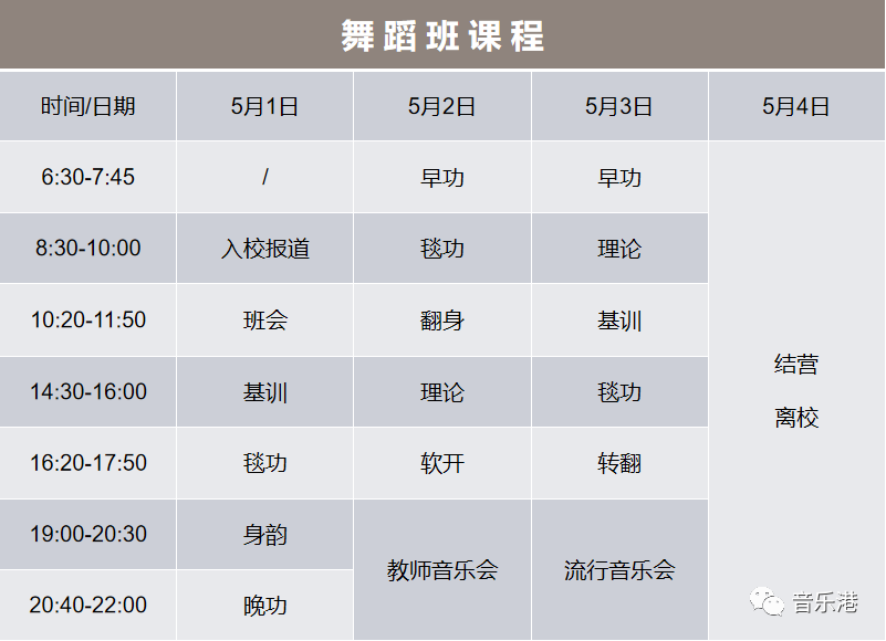 换洗衣物、生活用品(床上用品由音乐港提供)。