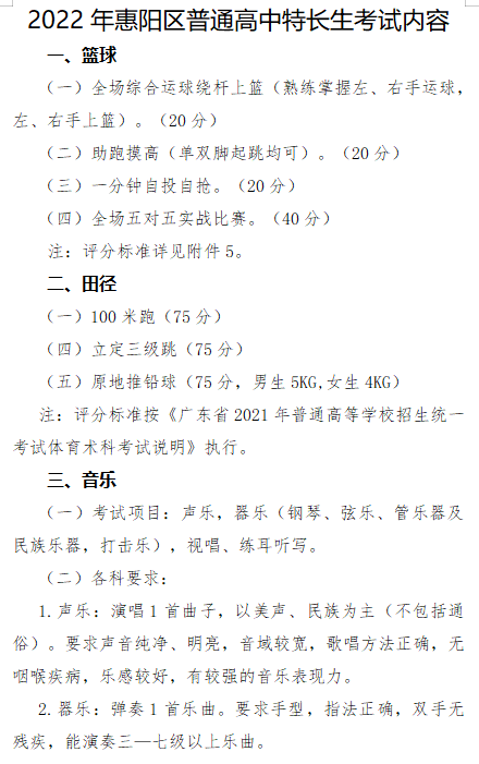 4.2022年惠阳区普通高中特长生考试内容