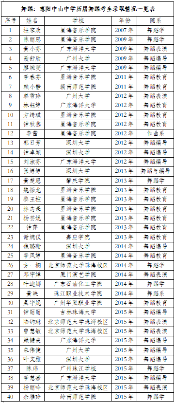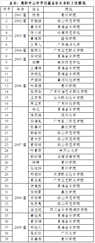 音乐(含舞蹈):惠阳中山中学高中部音乐竞赛获奖情况