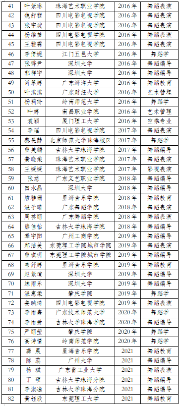 2019年带领惠阳区中小学教师舞蹈团参加惠州市中小学教师舞蹈大赛,编排并参演了《冬去春来》,获最佳表演奖,优秀编导奖。