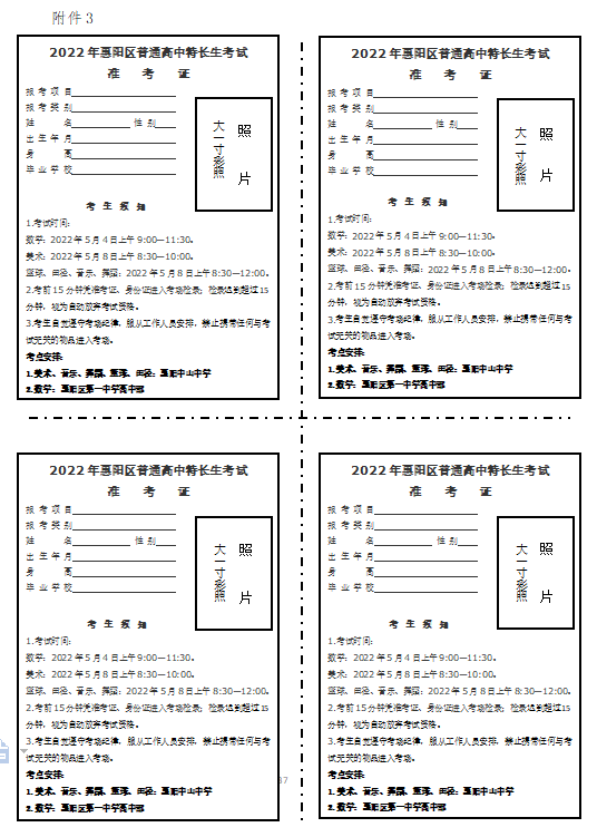 3.2022年惠阳区普通高中特长生考试准考证