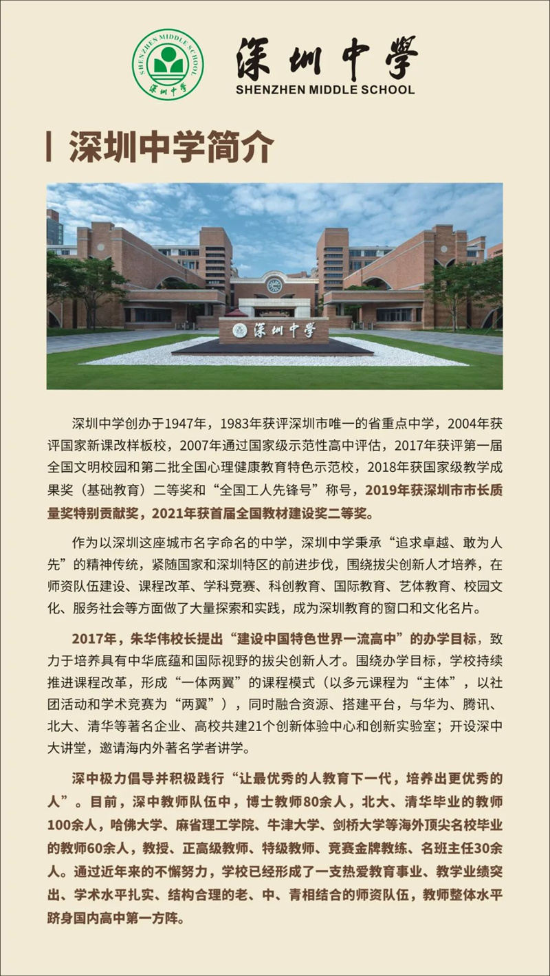 来源:深圳中学简介 | 作者:深圳中学简介 | 发布时间: 2022-05-02 | 19123 次浏览 | 分享到:
