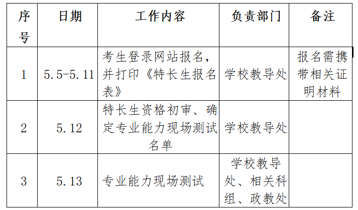 (一)特长生实行专业成绩和文化成绩并轨录取。