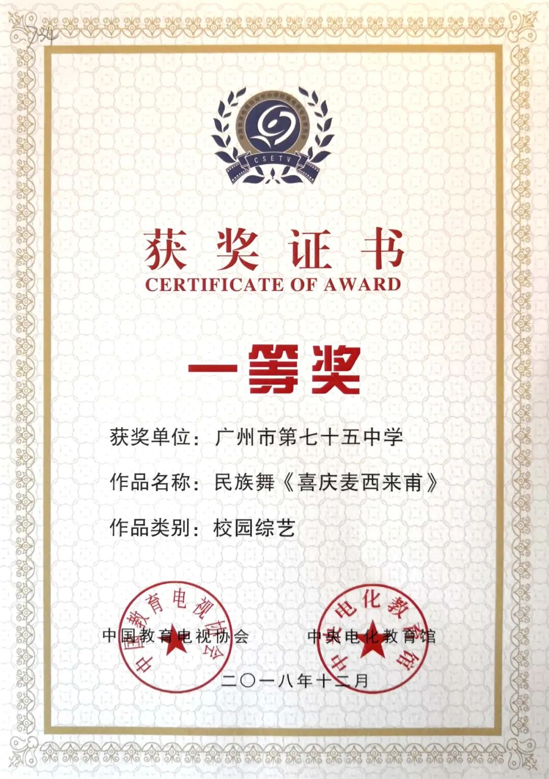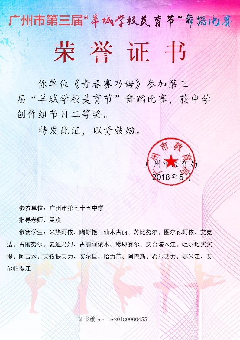 舞蹈荣誉证书