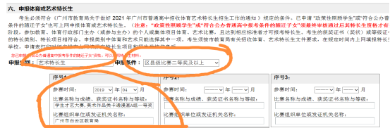 下拉到第六项特长生申报