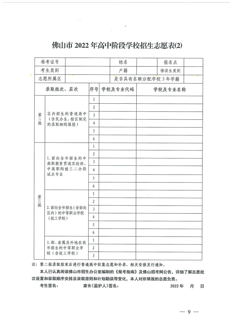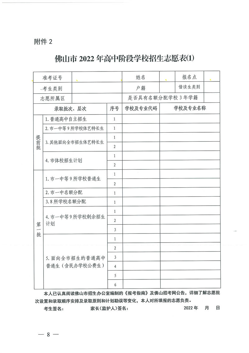 佛山市2022年高中招生志愿填报流程和志愿表