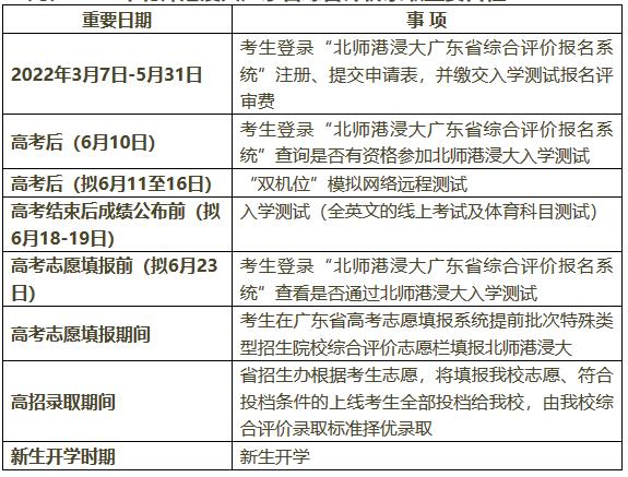九、2022年北师港浸大广东省综合评价录取重要日程