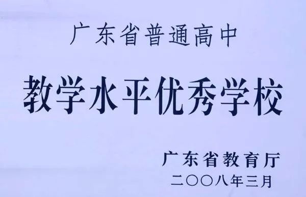 是全国精神文明建设工作先进单位、中国可持续发展教育全国示范学校,首批广东省国家级示范性普通高中、广东省教学水平评估优秀学校,首批佛山市精品高中创建学校。