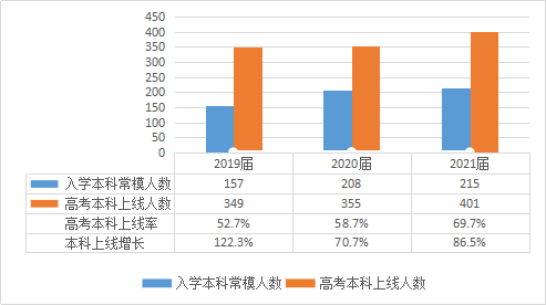 2021年本科上线人数401人,上线率69.7%