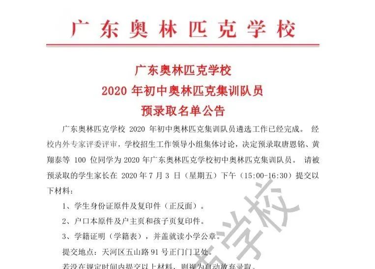这是东莞市唯一的录取名额