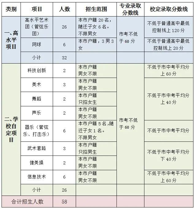 各项目招生具体方案