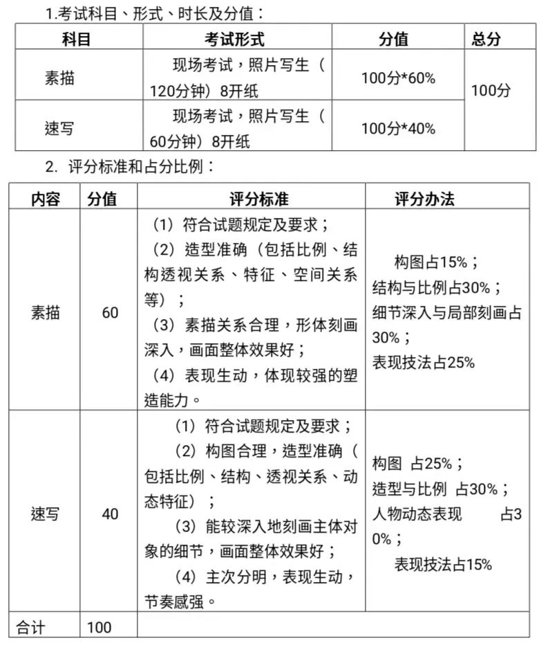②考试科目:素描、速写。考试需带工具:铅笔、炭笔、橡皮、画板等。纸张、画架由学校提供。