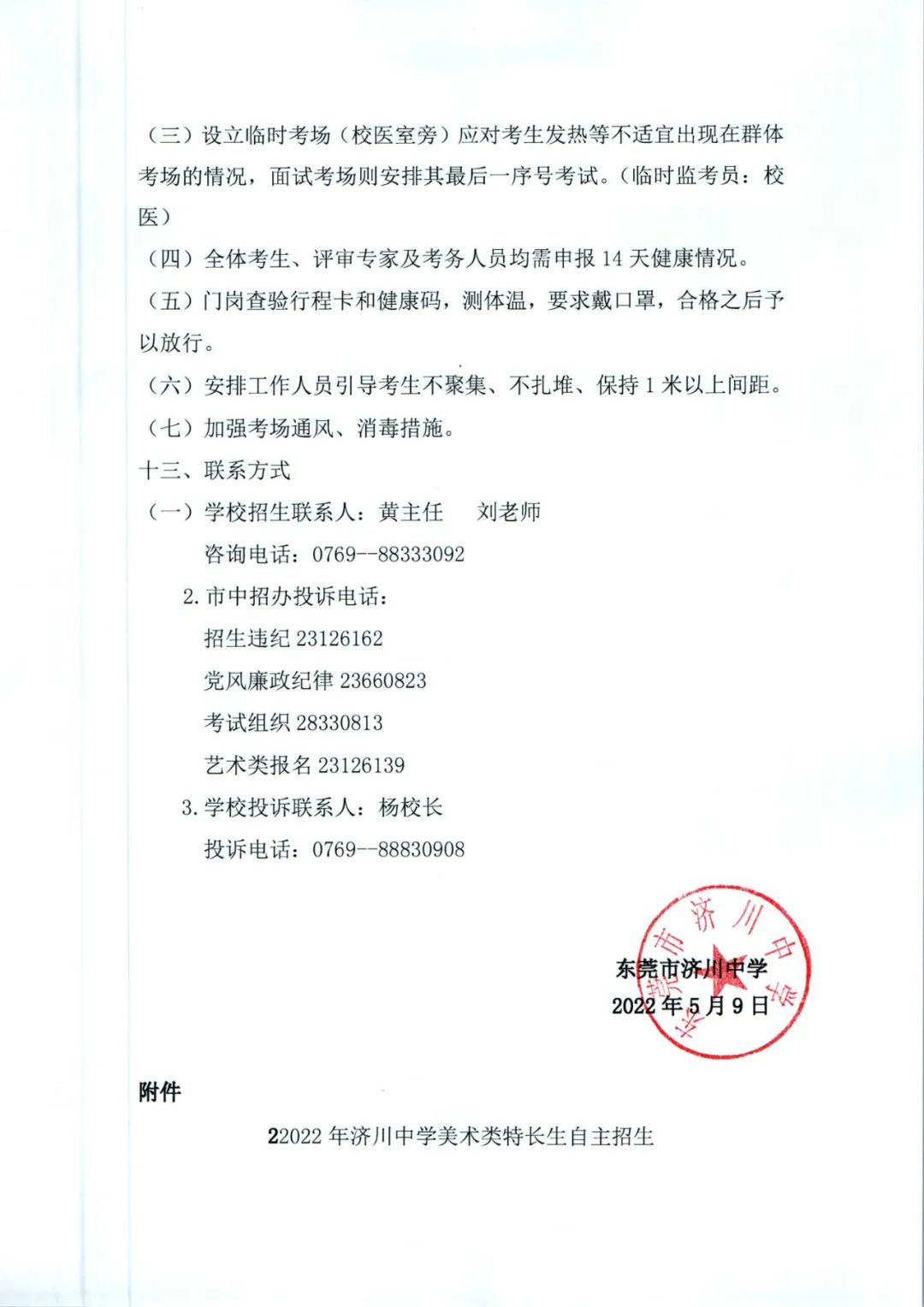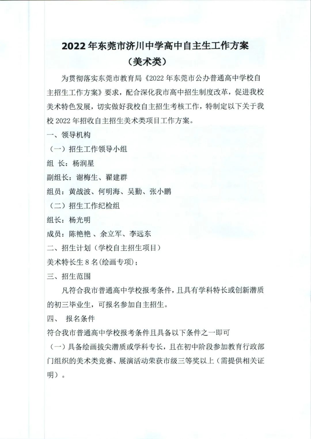 2022年东莞市济川中学高中特长生自主招生工作方案(美术类)