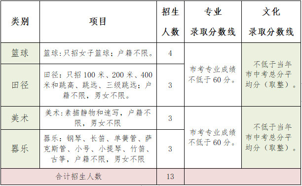 招生类别:篮球、田径、美术、器乐