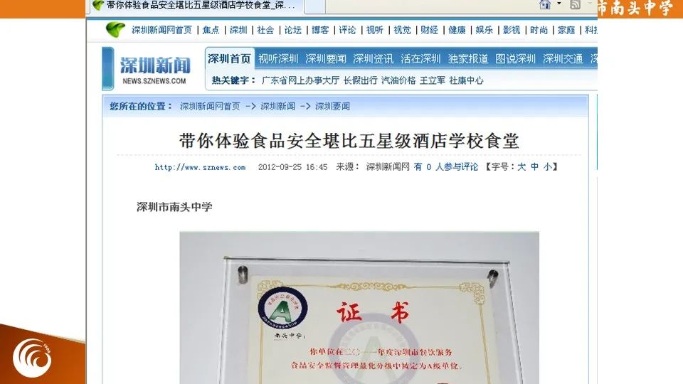 问:近一年,南头中学取得了什么主要荣誉?