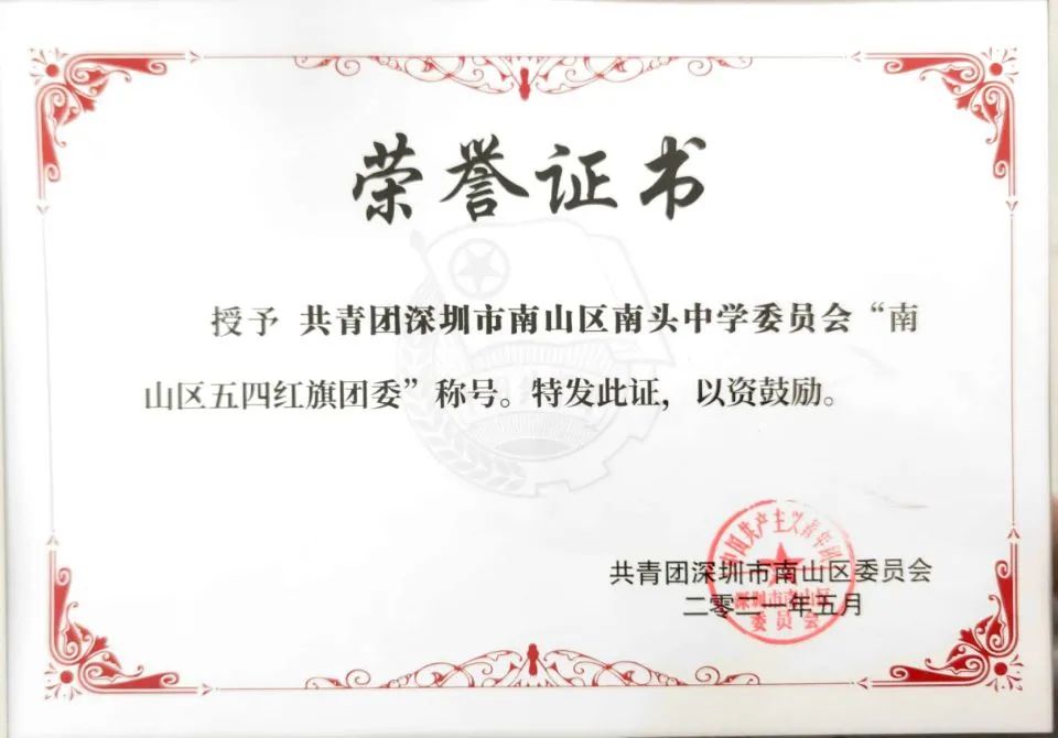 答:2021年7月,正值建党百年之际,学校被深圳市委授予“深圳市先进基层党组织”荣誉称号。近一年,学校还被深圳市总工会授予“深圳市先进职工之家”,被南山区委组织部授予“四星级党支部”,被南山团区委授予“五四红旗团委”等。