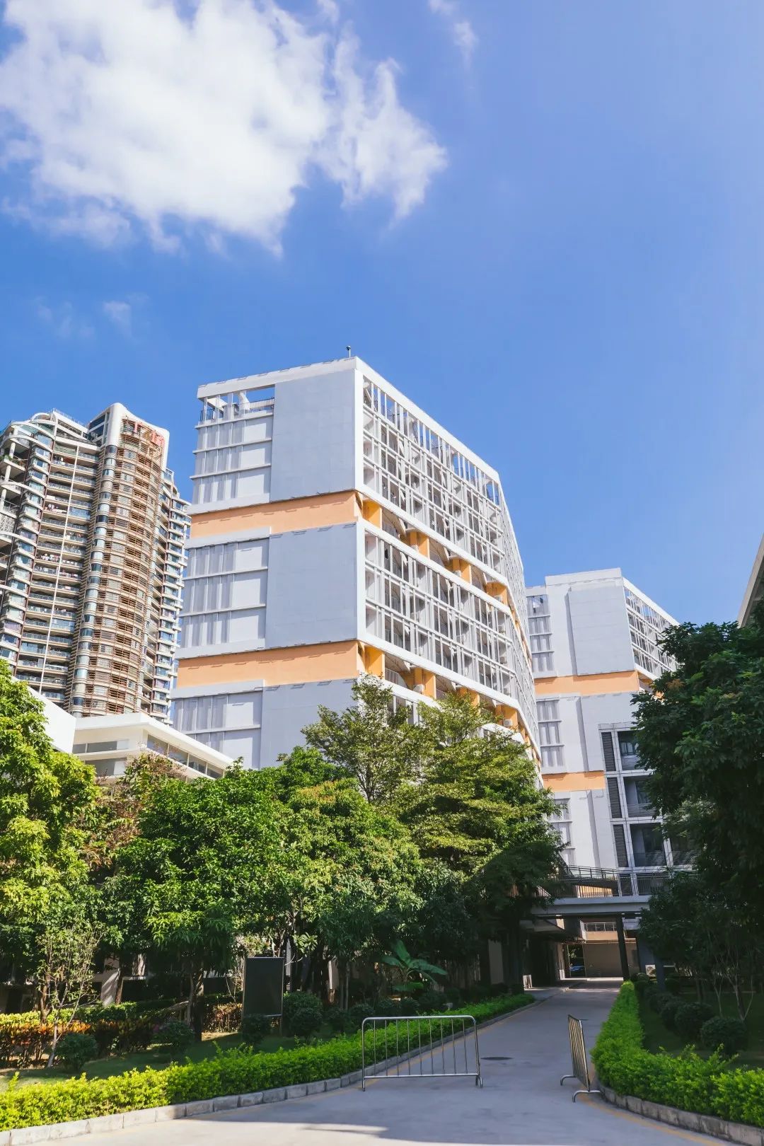学校实行全寄宿制,政府投资1.4亿兴建的二栋14层高的学生宿舍已交付使用,可以解决所有学生的住宿问题。学生宿舍环境幽静,可俯瞰世界之窗和深圳湾一线海景,每间宿舍都有独立洗手室、冲凉房,24小时供应热水、配备独立空调、电话,校内超市、医务室等一应俱全,还有专职心理教师为学生提供辅导。
