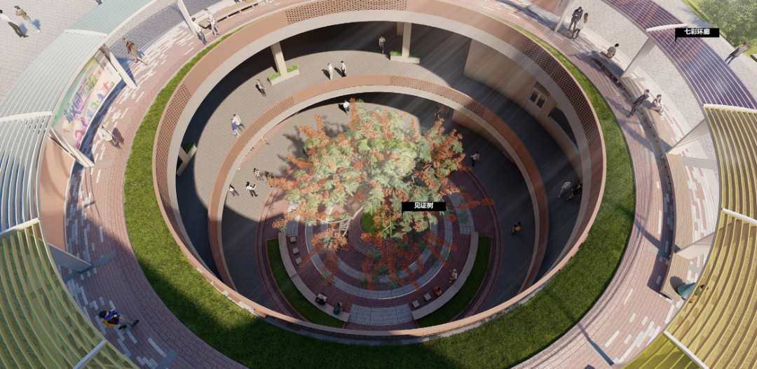 ☞ 学校建有运动区、礼仪文化广场、屋顶露台花园、圆环广场等主题分区。
