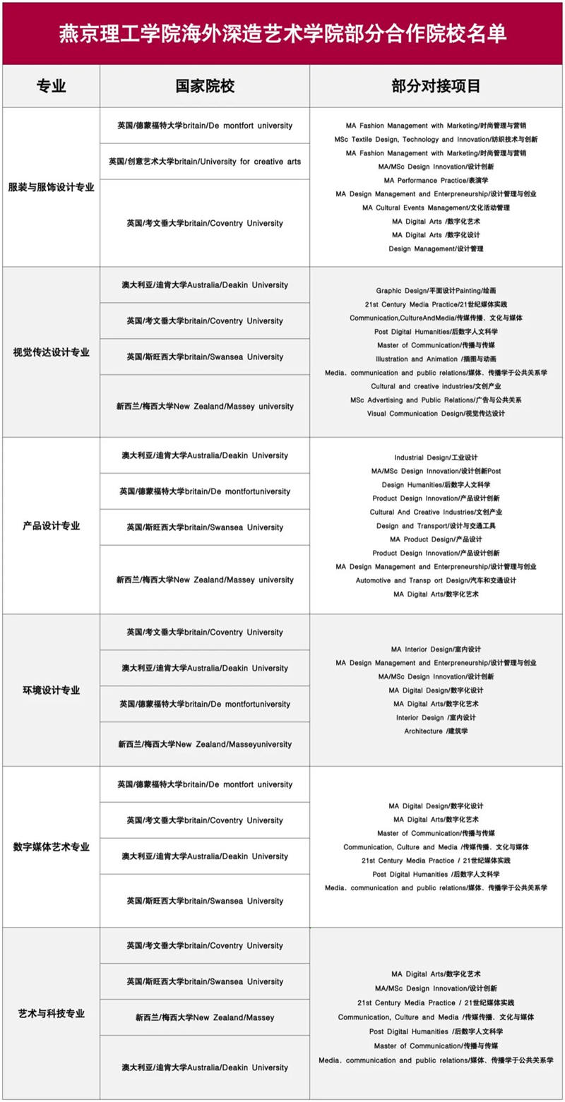 为满足学生高层次求学的个性化需求,培养具有国际化思维和全球化视野的精英学子,学校与全球百余所知名大学深度合作,打造了海外深造培养计划,在燕理实现从本科到世界名校硕士的华丽转身。
