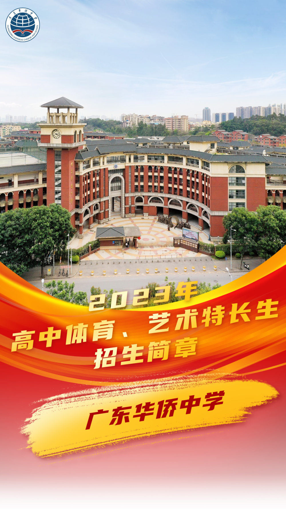 广东华侨中学(简称“侨中”)创建于1930年,是直属广州市教育局领导的广东省国家级示范性普通高中,全国特色学校。学校历史悠久,文化底蕴深厚。一代代侨中人秉承“爱国、正直、奋发、图强”的校训,奋发有为,砥砺前行,为民族铸希望,为国家育栋梁。广东华侨中学管弦乐、乒乓球、网球、跆拳道、游泳项目等项目入选广州市中小学校高水平学生体育美育团队。根据广州市教育局穗教体卫艺《广州市教育局关于做好2023年广州市普通高中招收体育艺术特长招生工作的通知》的精神,今年我校高中招收一定数量的体育、艺术特长生。现将有关事宜和要求公布如下。