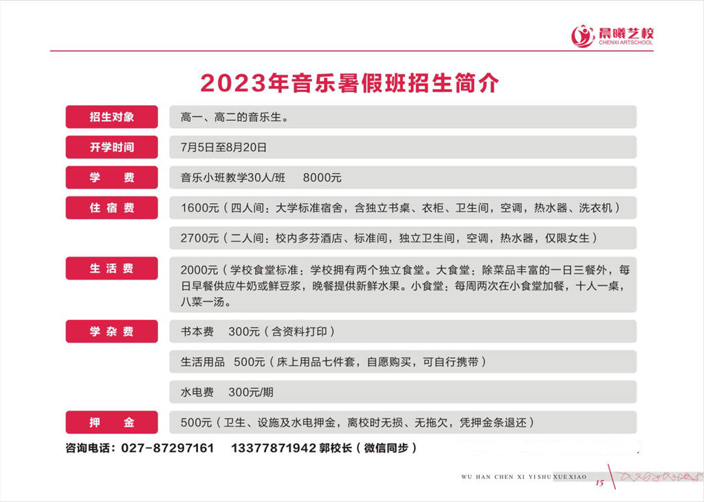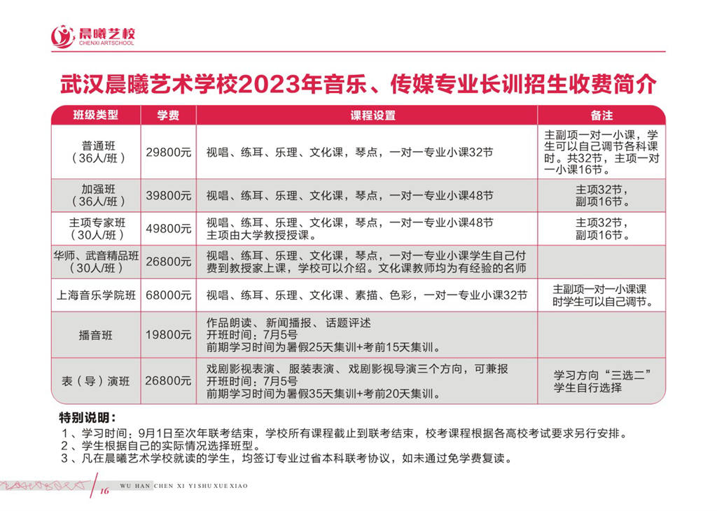 武汉晨曦音乐艺考培训学校2023年招生简章