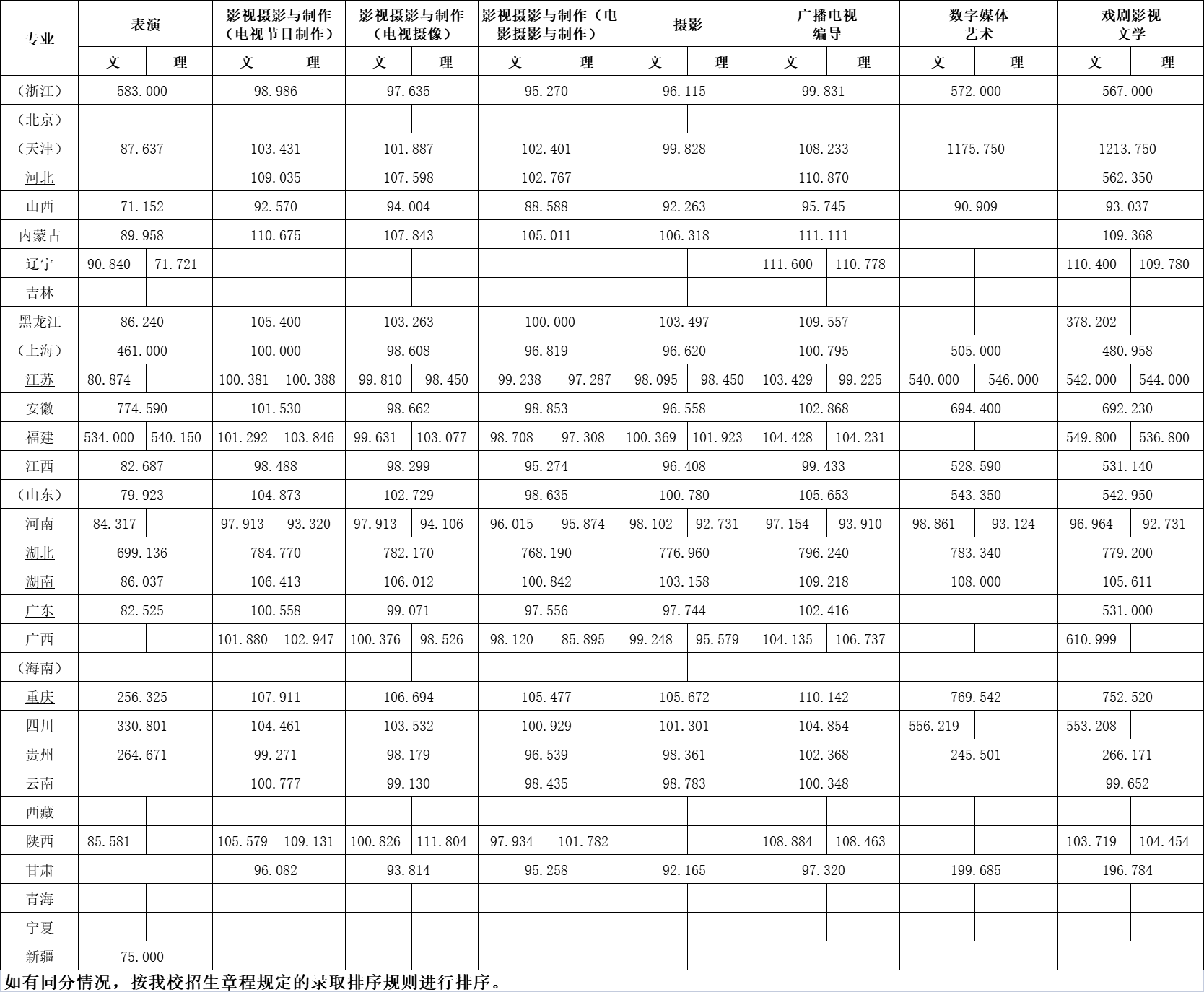 浙江传媒学院2022年表演摄影等其他类专业高考录取分数线