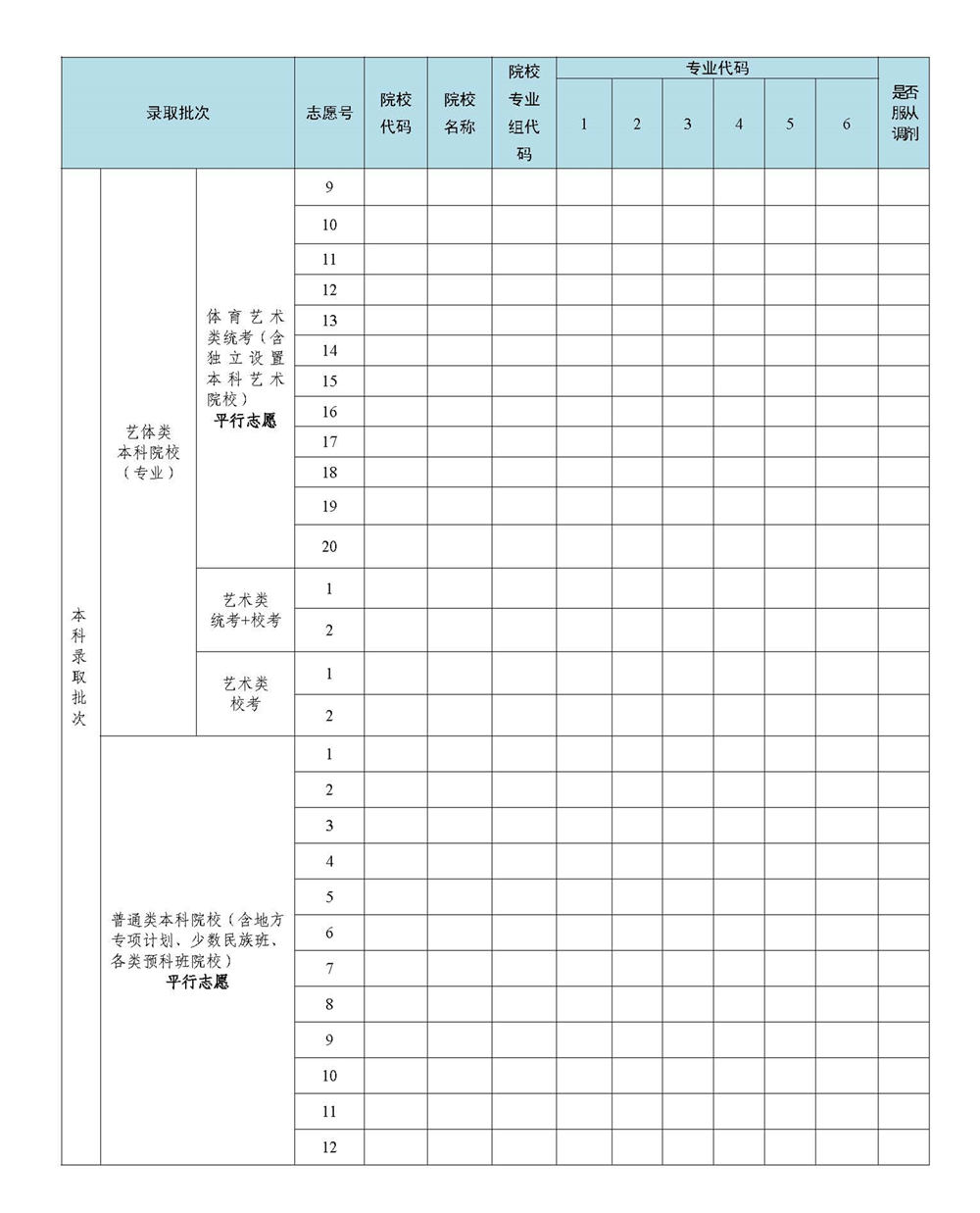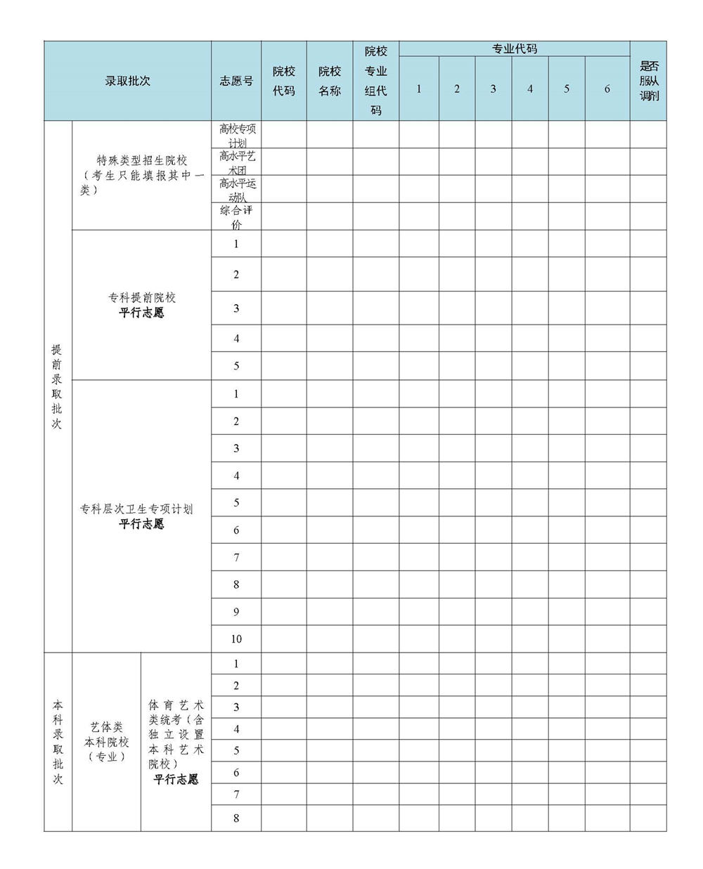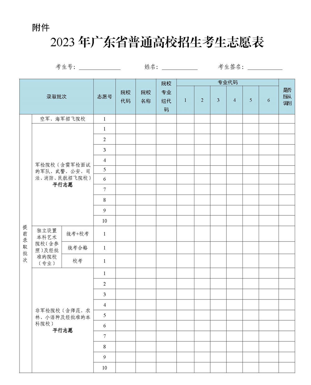 2023年广东省高考志愿表