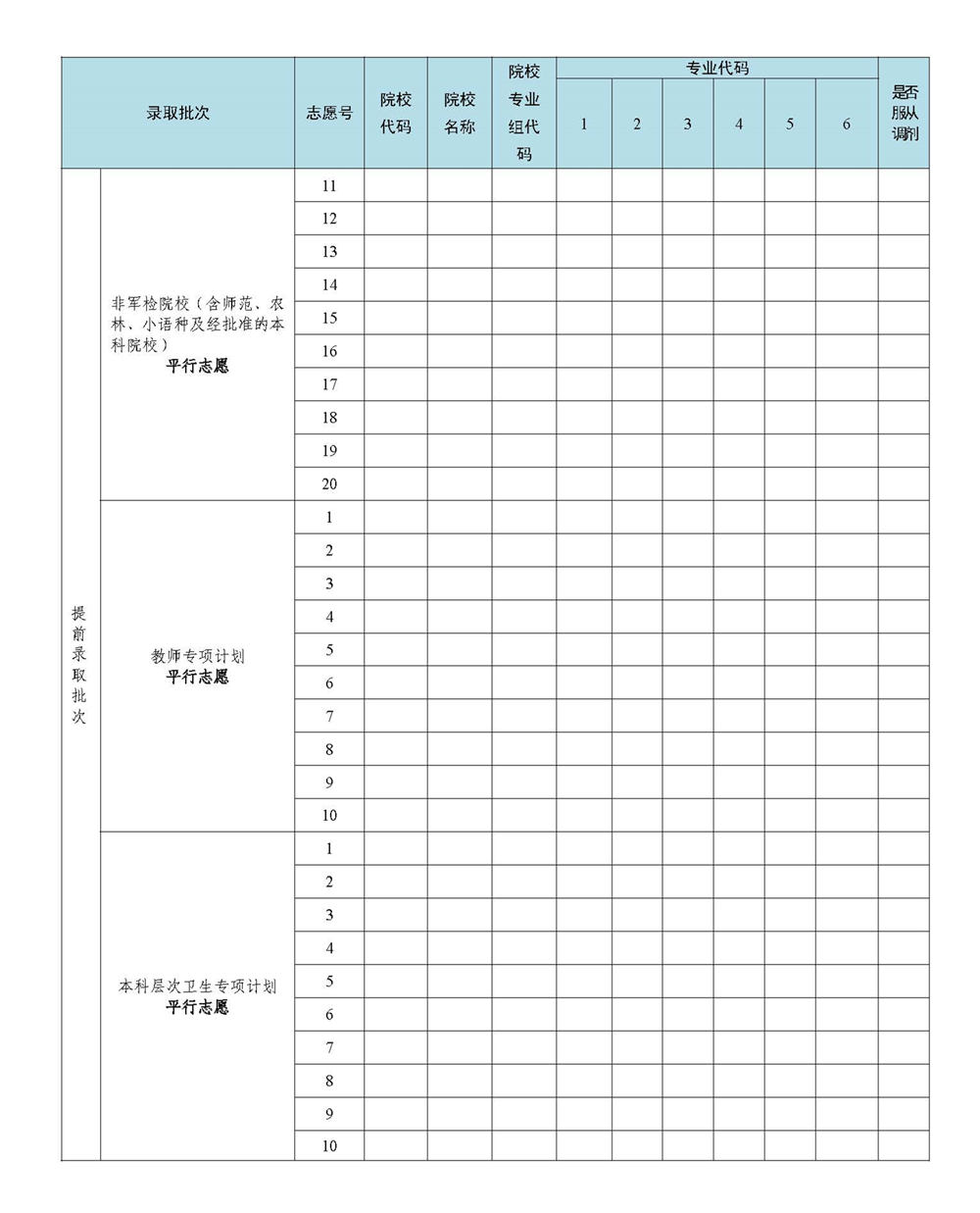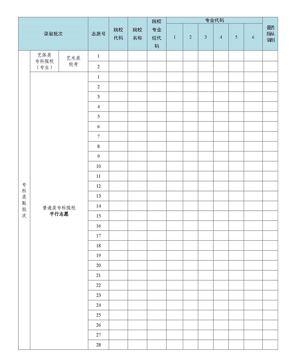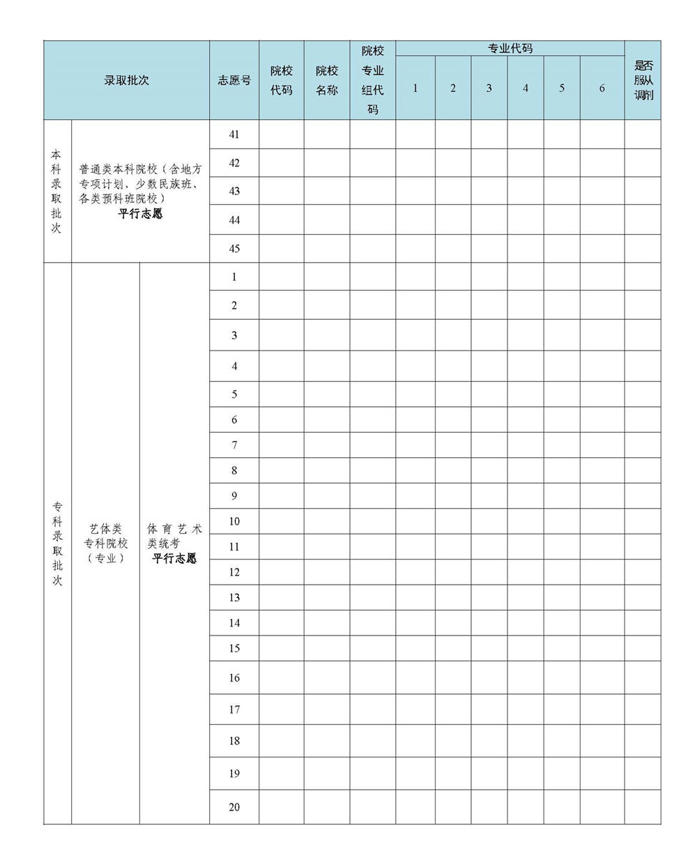 2023年广东省高考志愿表