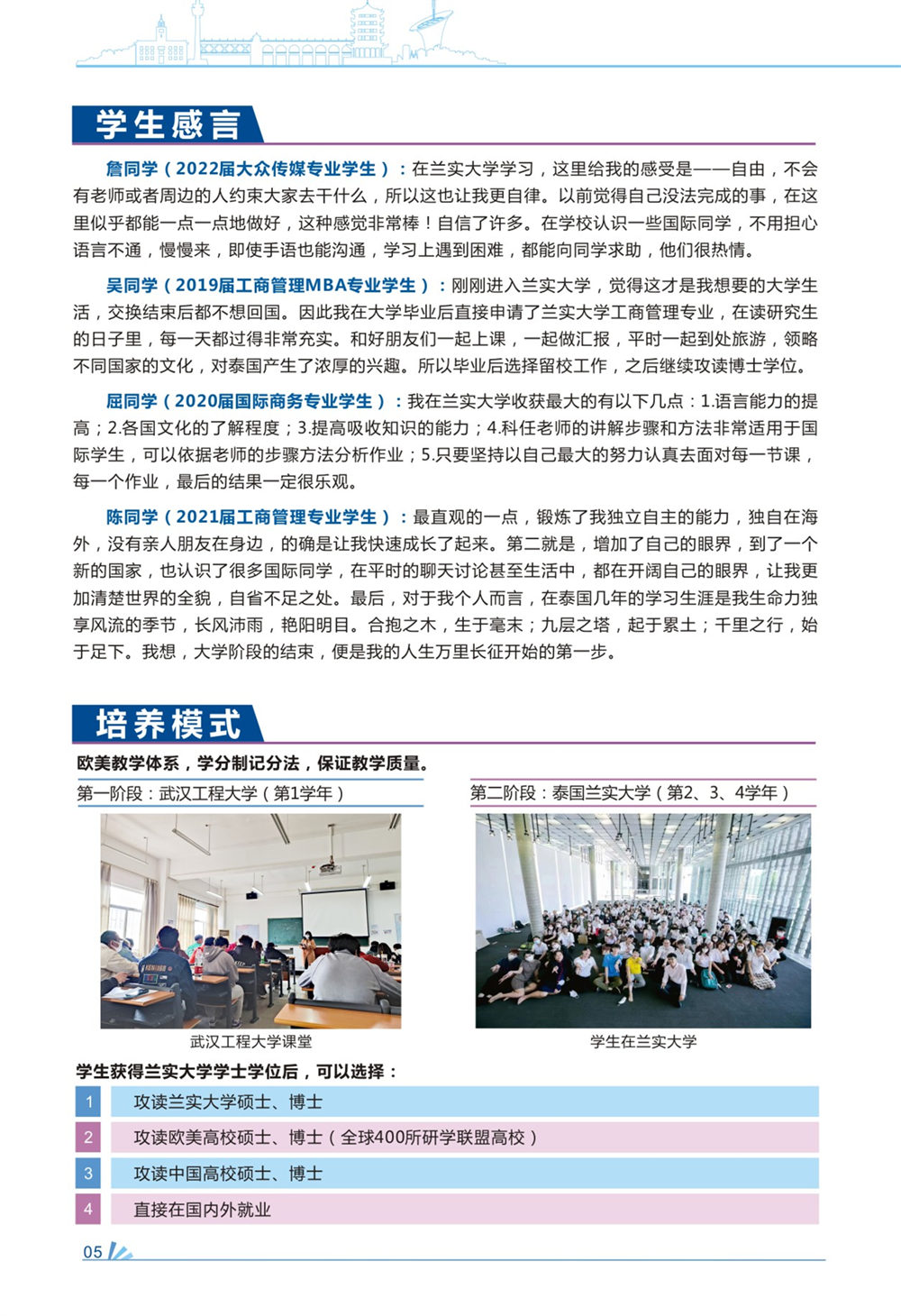 武汉工程大学1+3泰国兰实大学联合培养本科招生简章兰实大学的大众传媒学院是东南亚著名的传媒类学院,建立了演播大厅、观影厅、后期制作等专业设施设备。兰实大学大众传媒学院也是传说中的明星学院,这里有超过40位泰国的明星就读