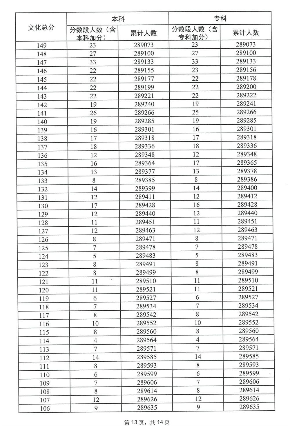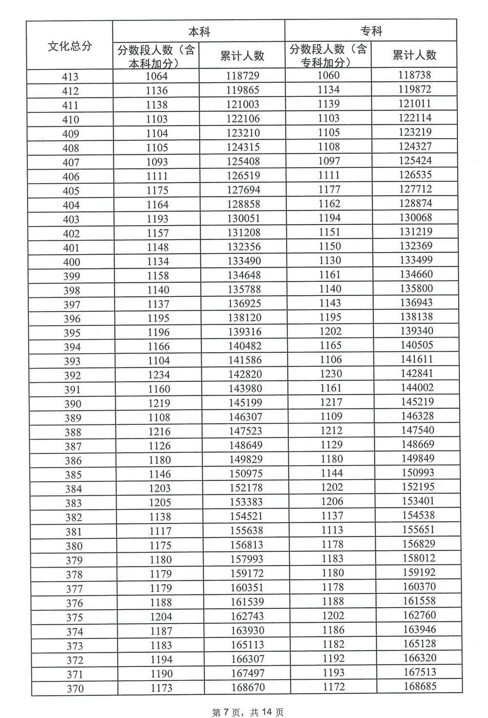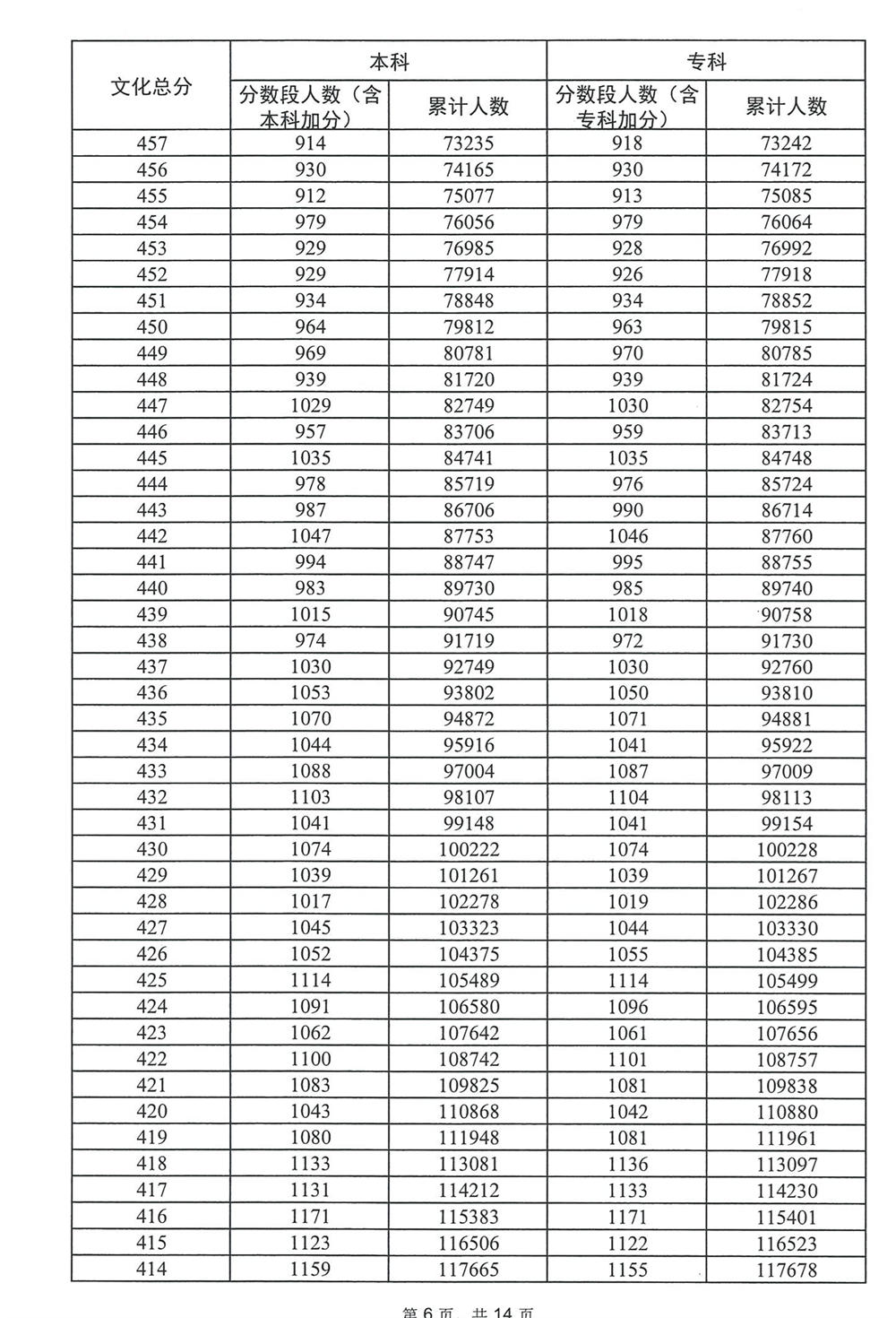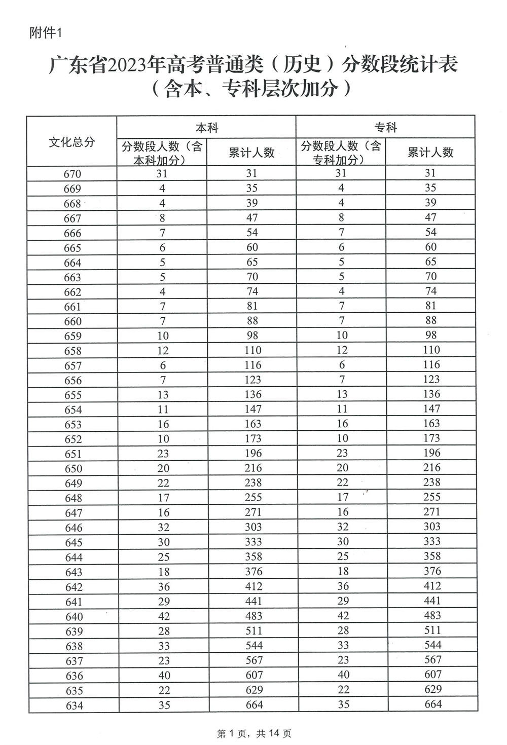 广东省2023年高考普通类(历史)分数段统计表