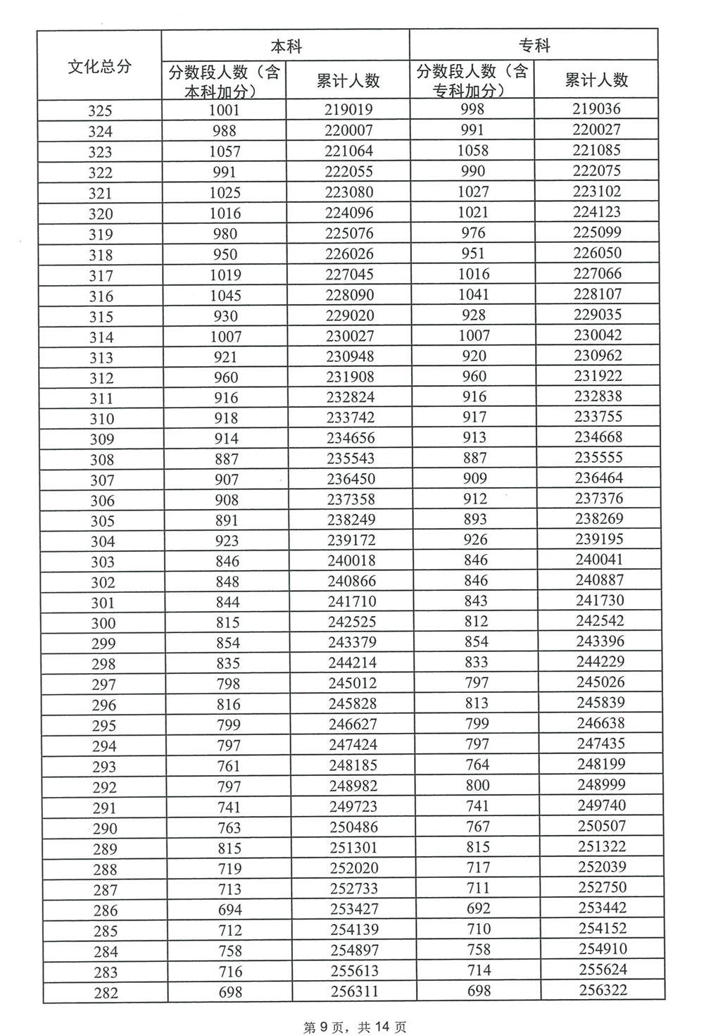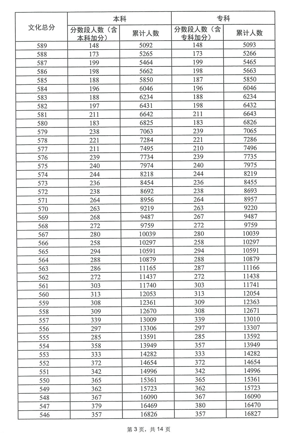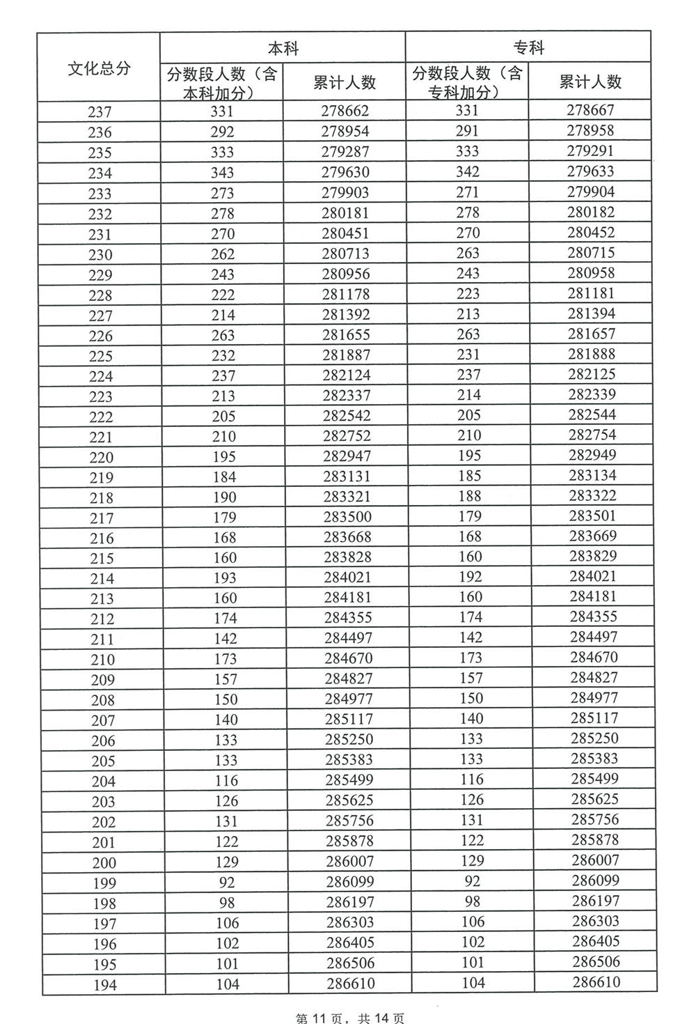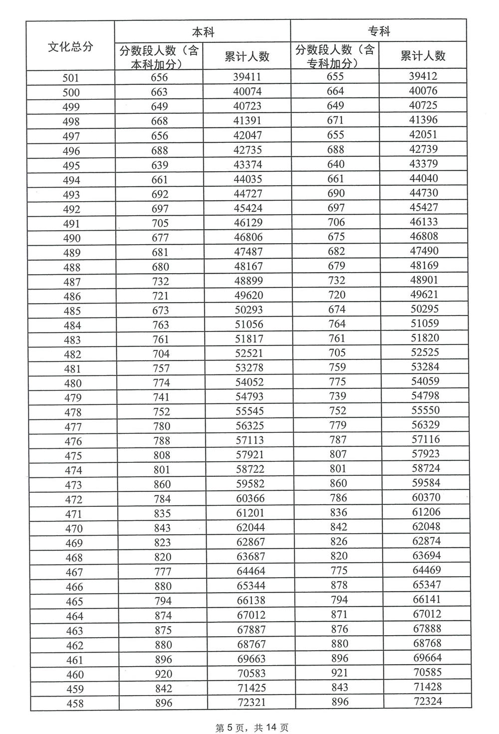 广东省2023年高考普通类(历史)分数段统计表