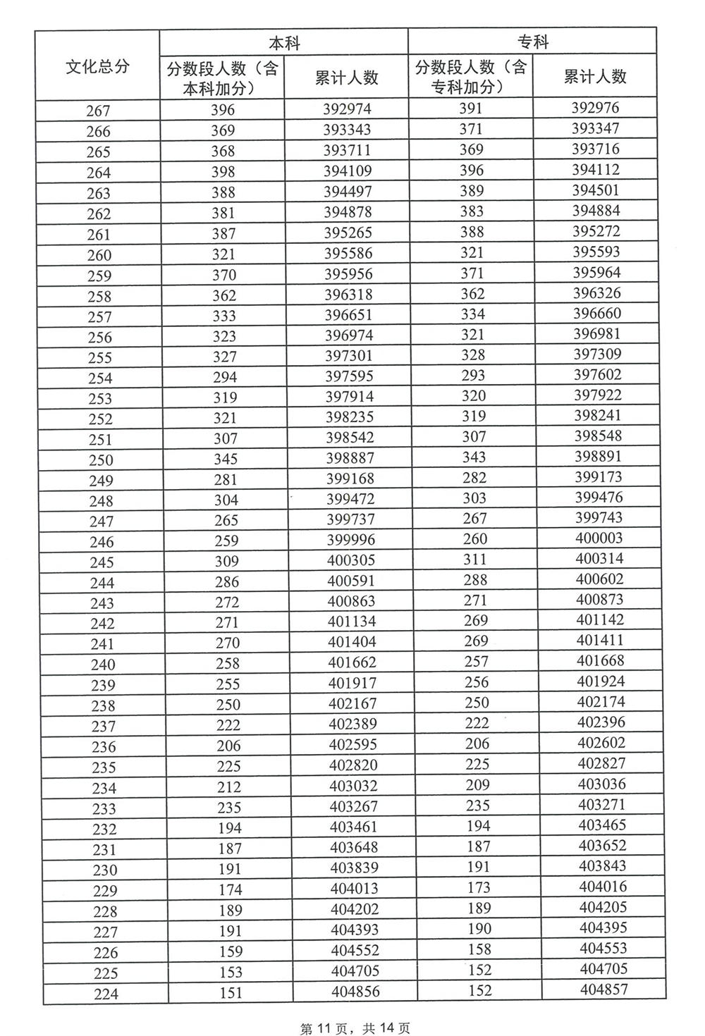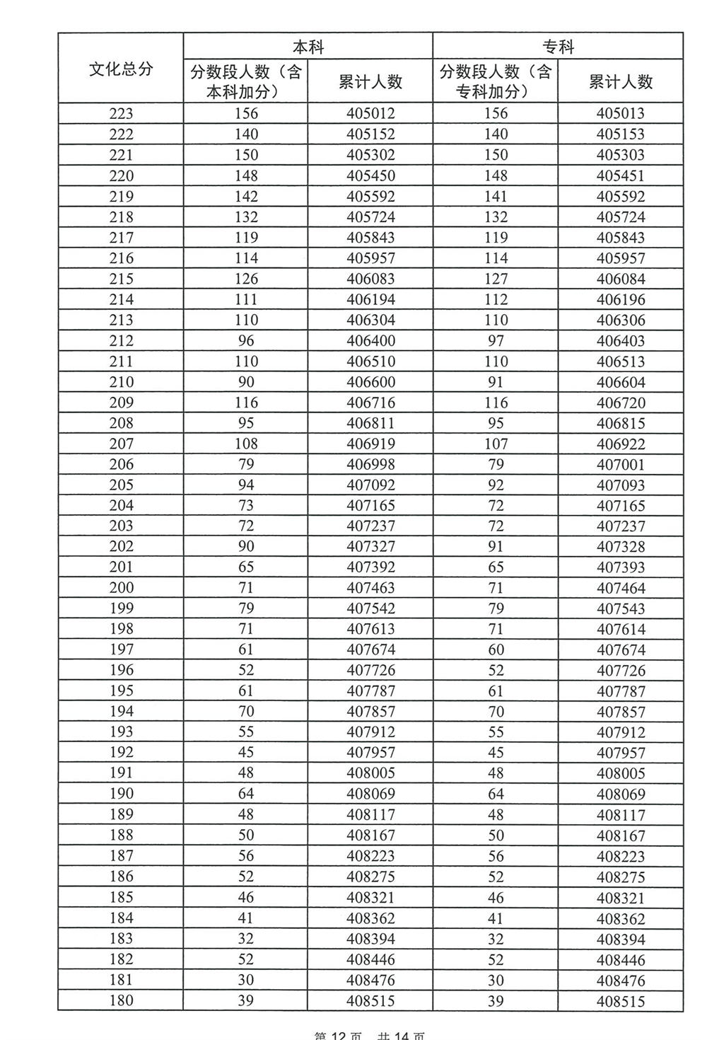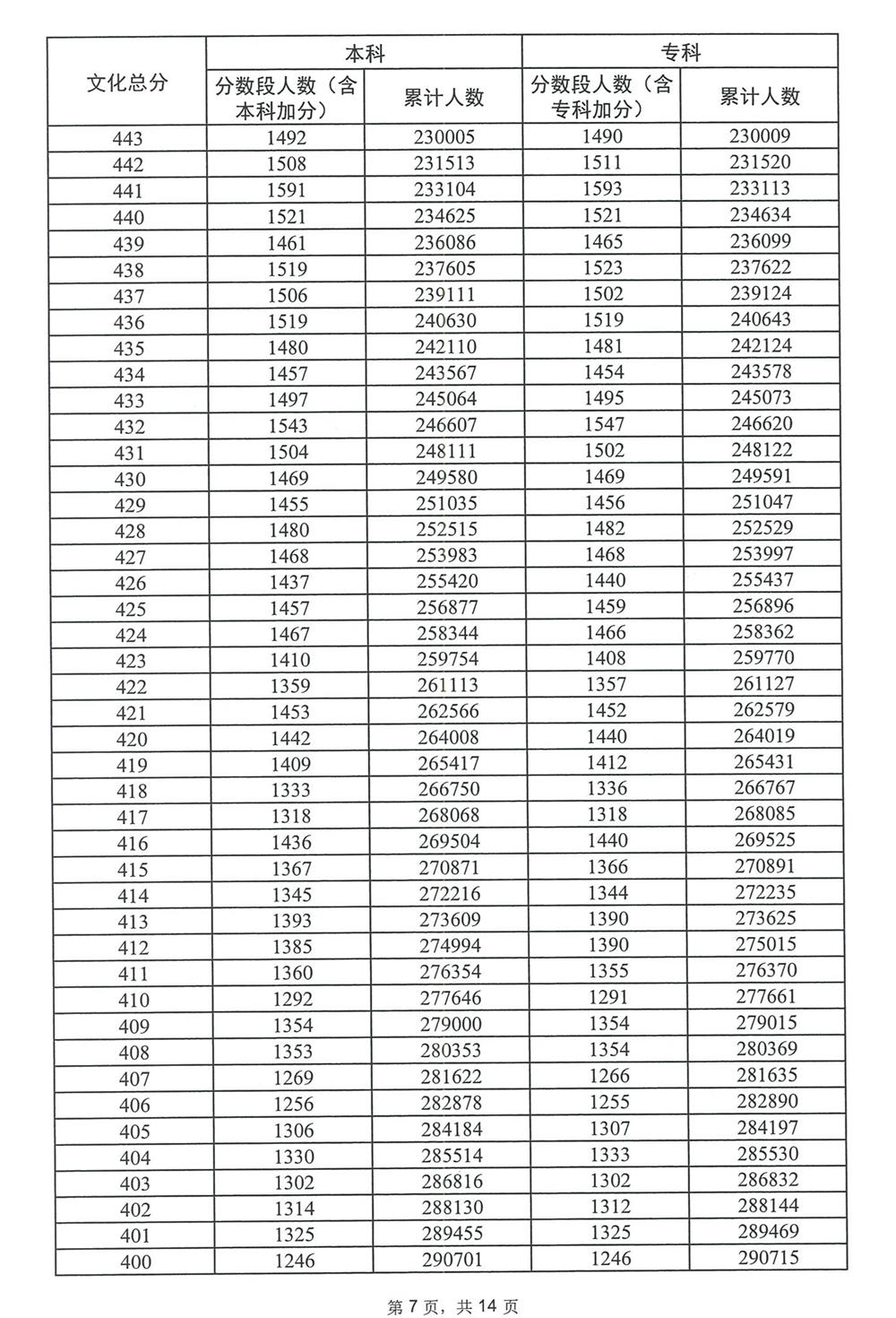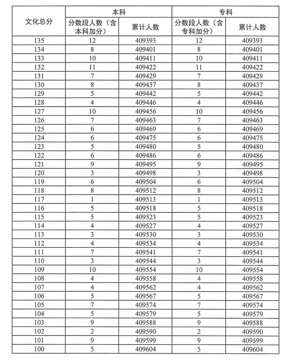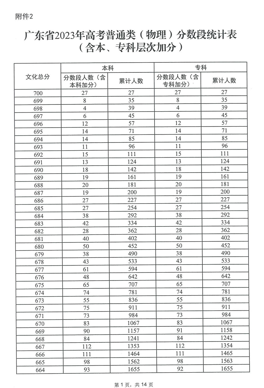 广东省2023年高考普通类(物理)分数段统计表